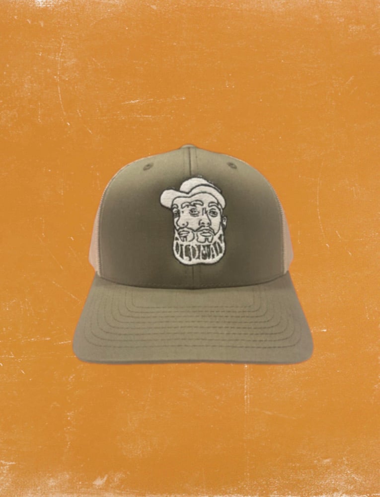 “OLDMANTAN” SNAPBACK [OLIVE] (w/ glow in the dark logo thread)